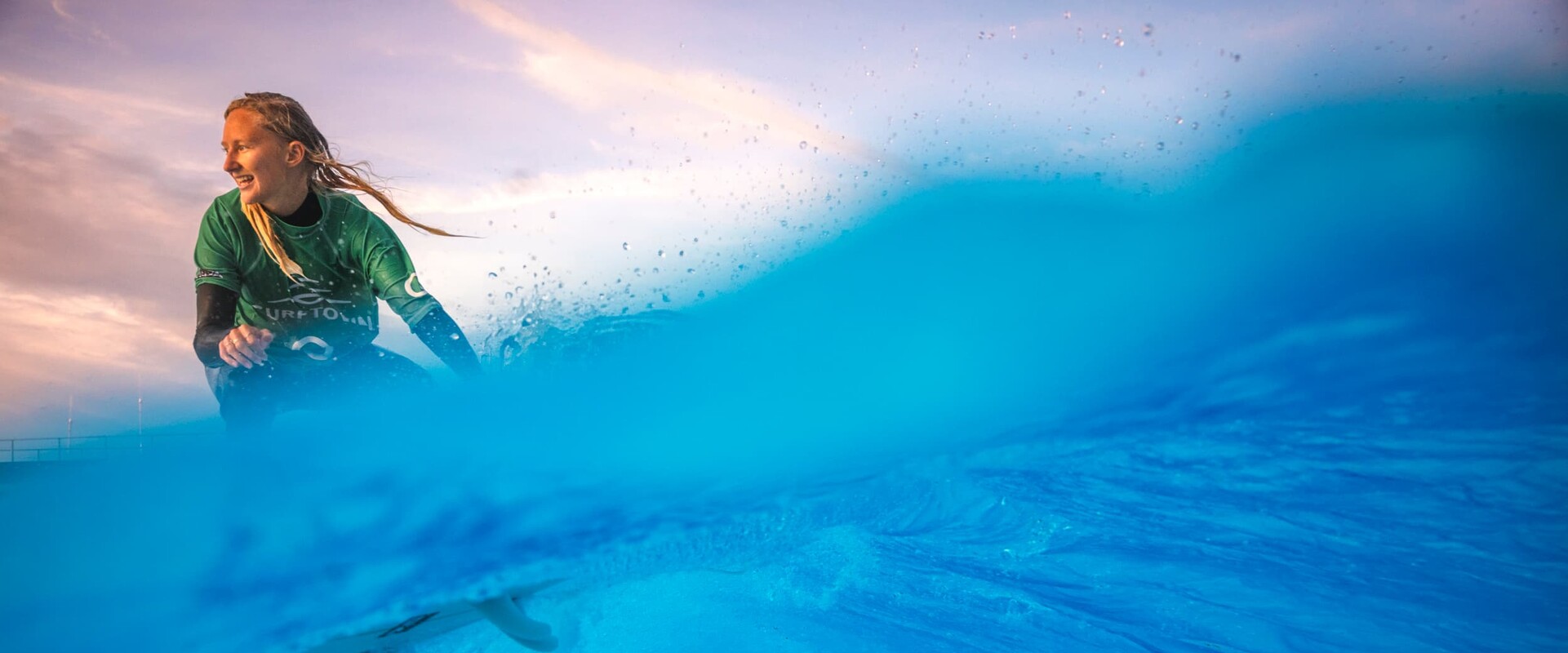 Unser Lineup ist der Startpunkt für alle Wellen im A-Frame Modus. Von hier aus paddelst du deine Wellen an und machst deine Take-Offs. Da sich der Ausgangspunkt für alle vier Surfzonen hier zentral im Wave Pool befindet, bist du nie ganz getrennt von Freund:innen oder Familienmitgliedern, die zur gleichen Zeit eine andere Session oder ein anderes Surf-Level gebucht haben.