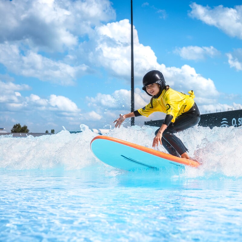 In unserem Wavepool wird in bis zu vier verschiedenen Zonen gleichzeitig gesurft. Pro Surfzone gibt es ein Maximum von 14 Surfer:innen. Durch die begrenzte Anzahl an Surfer:innen pro Zone sind dir eine Vielzahl an Wellenversuchen und ein entspanntes Lineup garantiert.